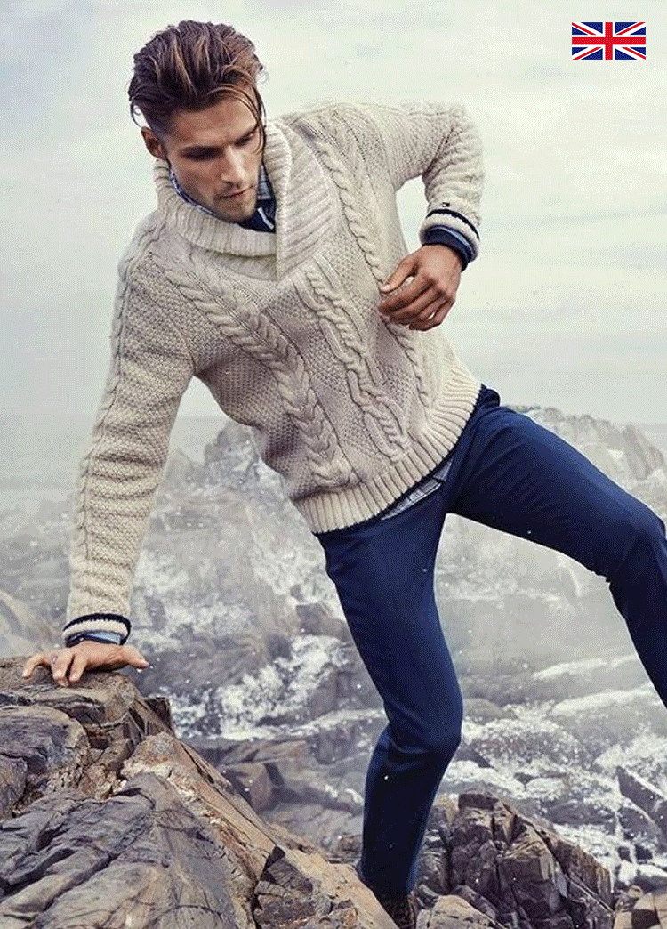 Herren-Kaschmirpullover mit Lederknopf-Schrägkragen